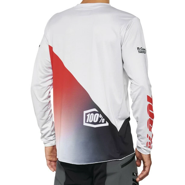 Das 100% R-Core X Langarmtrikot ist ein Premium-Modell, das auf DH/Enduro auf höchstem Niveau ausgerichtet ist! Sein Schnitt ist so konzipiert, dass es in der Angriffsposition ideal fällt, mit einem verlängerten Rückenteil. Dieser Race-Schnitt ist leistungsorientiert; das Trikot liegt etwas enger an als ein klassisches MTB-Trikot. Das Design aus Polyester/Elasthan bewahrt die Bewegungsfreiheit bestmöglich. Das leichte, antimikrobielle Meshgewebe optimiert außerdem die Atmungsaktivität bei voller Anstrengung. Das Trikot verfügt über feine Kontraststreifen im Schulterbereich, an der Taille und an den Ärmelbündchen. Diese Feinheiten verbessern den Tragekomfort und sparen ein paar Gramm bei der Konstruktion. Das Trikot verfügt über eine praktische Innenseite aus Mikrofaser, mit der Sie das Visier der Maske abwischen können.