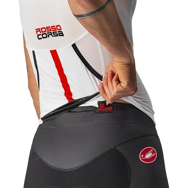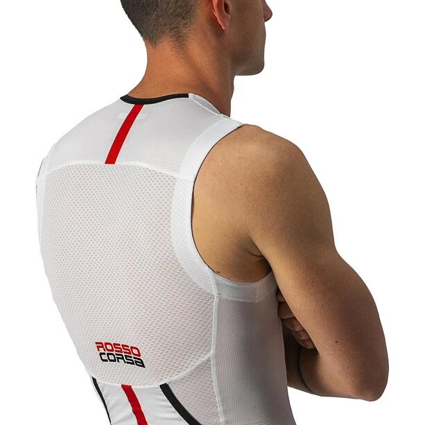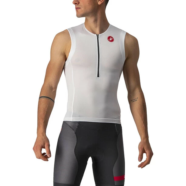 Die Tri-Mode (und der Windkanal) haben den Trend zu kurzärmeligen Oberteilen verstärkt, aber Castelli ist der Meinung, dass das traditionelle ärmellose Oberteil immer noch seinen Platz hat. Es ist bequemer beim Laufen und kühler bei heißem Wetter und vielleicht bist du einfach ein Traditionalist.Das Oberteil ist vollgepackt mit Features: Das Material auf der Vorderseite stammt direkt vom Aero-Renntrikot, mit dem die Tour de France gewonnen wurde, und das Material auf der Rückseite bietet maximale Atmungsaktivität. Das Oberteil hat zwei großzügige Taschen für alles, was du brauchst. Das Oberteil ist vollgepackt mit Features: Das Material auf der Vorderseite stammt direkt vom Aero-Renntrikot, mit dem die Tour de France gewonnen wurde, und das Material auf der Rückseite bietet maximale Atmungsaktivität. Das Oberteil hat zwei großzügige Taschen für alles, was Sie mitnehmen möchten. Es verfügt über SnapLock-Verschlüsse, die an den Castelli-Shorts befestigt werden, um zu verhindern, dass das Oberteil beim Schwimmen hochrutscht, und um den unteren Rücken auf dem Rad zu bedecken. Der YKK-Reißverschluss macht die Einstellung der Belüftung einfacher als je zuvor. Und schließlich wurde der Armausschnitt besonders sorgfältig gestaltet, damit er flach anliegt und dennoch weich bleibt, um Scheuerstellen zu vermeiden.