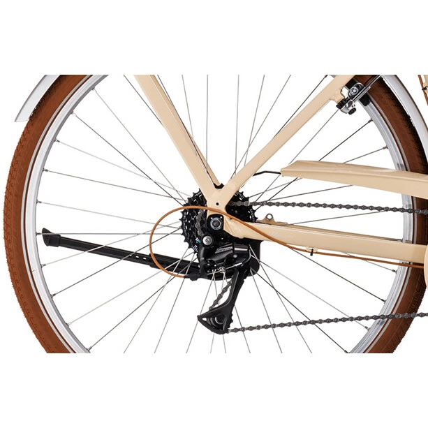Was praktisch und funktionell daherkommt, muss nicht gleich langweilig oder gar unschön sein. Der beste Beweis dafür ist das Ella Ride: Sein unglaublich schicker Retro-Look ist nur eines der Highlights, zusätzlich wurde bei diesem Bike eine komfortable Federgabel verbaut, die Unebenheiten und Ruckler vom Untergrund geschmeidig abfängt. Außerdem eine einfach zu bedienende, breit gefächerte Shimano Schaltung mit 3×8 Gängen, die für die optimale Abstimmung im Vorwärts sorgt. Was noch? Dank der LED Beleuchtungsanlage wirst du unterwegs immer optimal gesehen. Und ein elegant in das Design übergehender Gepäckträger sowie Schutzbleche und ein Seitenständer verleihen dem Ella Ride seine Vielseitigkeit und Alltagstauglichkeit.