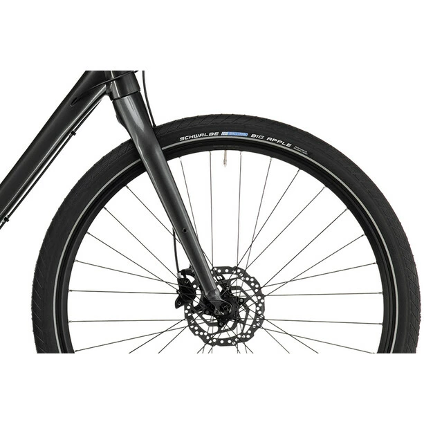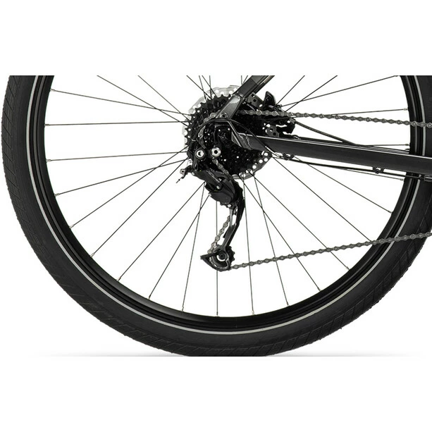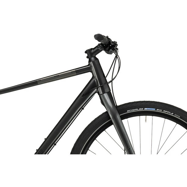 Mit dem Zweirad geht’s um Klassen einfacher und schneller durch den Stadtverkehr, keine Frage. Mit einem Zweirad wie dem Hyde zum Beispiel, einem schlichten und robusten City-Allrounder, der sich an den 29 Zoll Mountainbikes orientiert. Seine Schwalbe Reifen rollen extrageschmeidig und schnell durch den Großstadtdschungel und lassen sich von den leistungsstarken hydraulischen Shimano Scheibenbremsen zuverlässig, sicher und direkt stoppen, und zwar bei jedem Wetter. Die steife, aber trotzdem sehr leichte Gabel verspricht höchste Lenkpräzision. Und mit der leichtgängigen, breit gefächerten Shimano 3×9-fach Schaltung wird jede City-Tour zum entspannten Spaziergang.