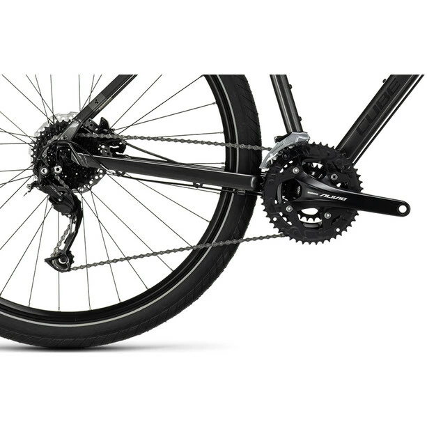 Die Fahrradkuriere der 80er und 90er waren damals nicht ohne Grund mit Mountainbikes in der City unterwegs – insofern sich CUBE bei der Entwicklung des Hyde auch an ihren 29er-Hardtails orientiert. Doppelt konifizierte Aluminiumrohrsätze bilden eine stabile, langlebige, leichte und agile Rahmenstruktur, die dank nahtlos integrierter Montagepunkte die individuelle Nachrüstung mit Gepäckträger und Schutzblechen ermöglicht. Außerdem bietet sie genügend Platz für zwei Trinkflaschenhalter – dadurch bist du vor allem auf längeren Touren durch die Stadt immer optimal mit Flüssigkeit versorgt. Schließlich komplettiert eine schlanke, steife Gabel den Rahmen, ihr Spezialgebiet: ein knackiges, präzises Lenkverhalten in Kombination mit wenig Gewicht und einem eleganten Look.