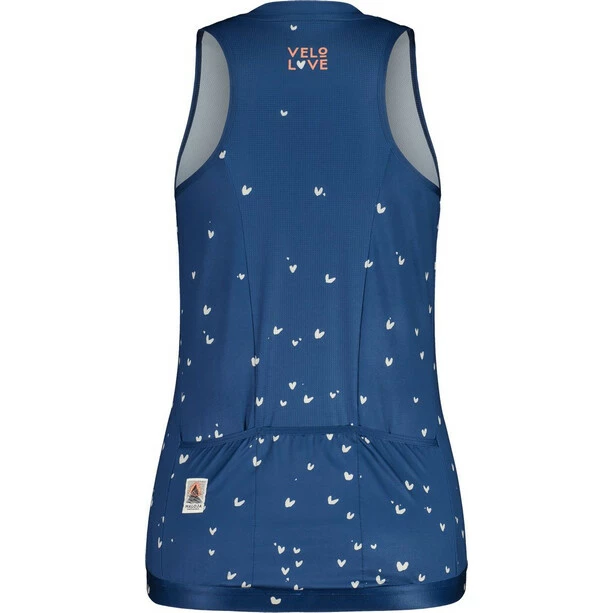 Schmale Passform für geringen Luftwiderstand, Mesh am Rücken und im Achselbereich für gute Belüftung, drei Rückentaschen bieten viel Stauraum. Fliegende Herzen als All-Over-Print.