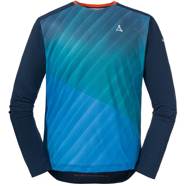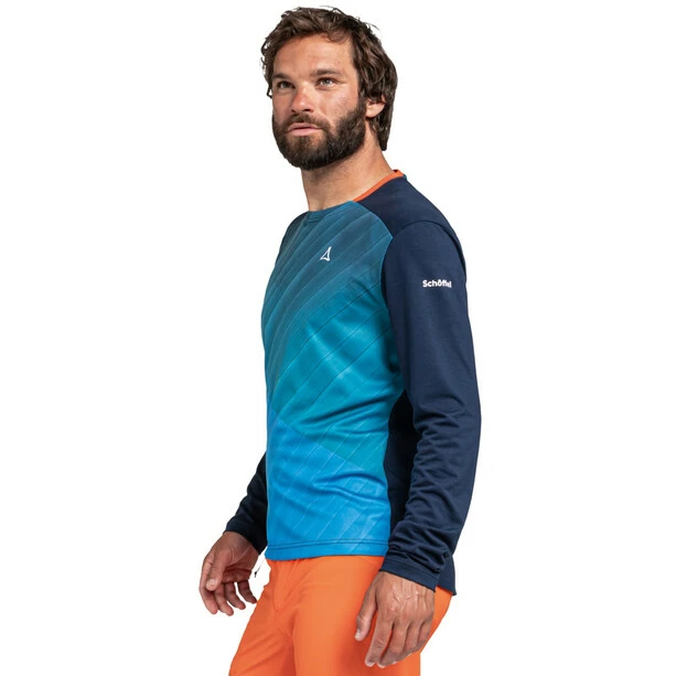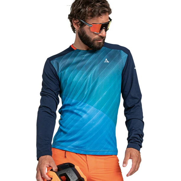 Das locker, lässige und leichte multifunktionale Langarmshirt von Schöffel ist perfekt zum Biken. Es ist schnell trocknend, atmungsaktiv und reguliert das Körperklima hervorragend. Der 2-Wege-Stretch bietet zusätzlich Komfort und Bewegungsfreiheit. Zudem verfügt das Langarmshirt über durchdachte Features. Während dem Run, wenn einem der Dreck um die Ohren fliegt, bekommt Jeder seine Brille schnell sauber, dank dem im Saum eingenähten Brillenputztuch.