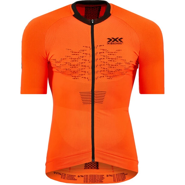 Aktiviere die ganze Radfahrpower in dir! Mit dem X-BIONIC THE TRICK 4.0 CYCLING ZIP SHIRTSH SL MEN verfügst du konstant über mehr Leistung als je zuvor. Die neue 4.0-Generation ist die erste, die die Retina Ultra-High-Definition-Qualität für maximale Funktionsgenauigkeit mitbringt. Das patentierte THE TRICK-System ist einzigartig: Es täuscht dein Gehirn, um deine Aufwärmzeit zu verkürzen und deine Leistung zu verbessern. Wie? THE TRICK schafft Wärmezonen entlang der Wirbelsäule, um die Wärmesensoren zu aktivieren. Diese Sensoren signalisieren „“Wärme““ an das Gehirn, das dann frühzeitiges Schwitzen auslöst. Das Ergebnis: Die Verdunstungskühlung wird aktiviert, bevor du überhitzt. Deine Wärmeregulierung ist optimiert, deine Performance und deine Ausdauer verbessern sich. Der innovative Dolphin Rider Neck sorgt für eine perfekte Passform und macht das Training auf dem Fahrrad komfortabler. Der integrierte Flexor Arm Cuff verhindert das Verrutschen der Ärmel. Schon beim ersten Training spürst du die Vorzüge des legendären, patentierten 3D Bionic Sphere Systems mit ThermoSyphon-Technologie, das leistungsfähiger ist denn je. Es optimiert dein Haut-Klima-Management durch grosse Austauschzonen an der Vorderseite. Es kühlt, wenn du schwitzt und wärmt, wenn du frierst.“
