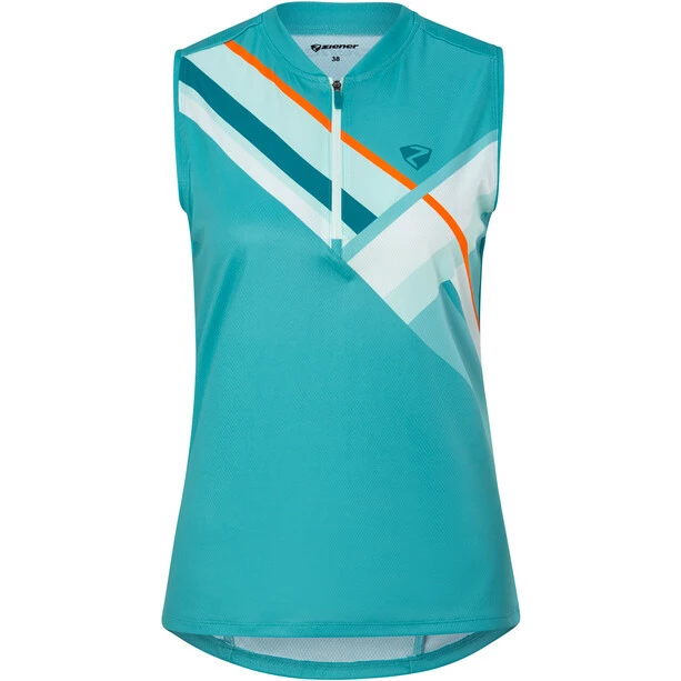 Das funktionelle, ärmellose ZIENER Fahrradtrikot NESIA für Damen mit halbem Front-Reißverschluss sorgt dank des schnelltrocknenden, elastischen Stoffes für höchste Performance. Die nahtfeine Reißverschlusstasche am Rücken bietet Platz für persönliche Utensilien. Der sportliche Sublimationsdruck und der Stehkragen sorgen für Style auf dem Bike. Made in Europe.